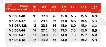 | Размер, спецификация | d1, мм | d3, мм | d7, мм | L3, мм | L4, мм | L23, мм | L24, мм |